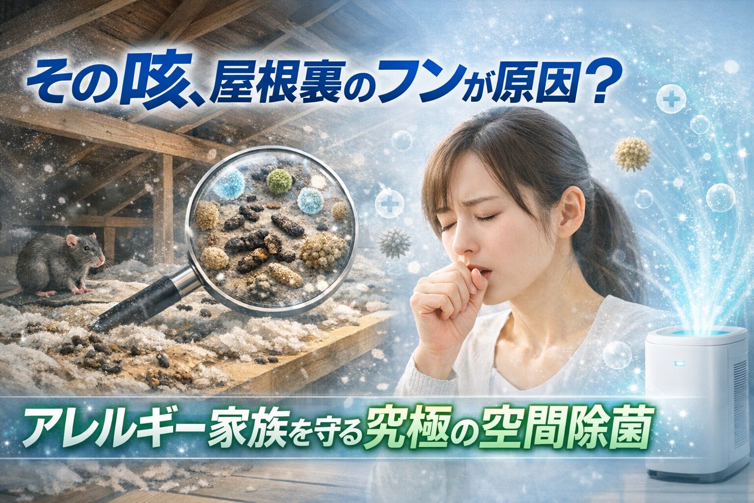 その咳、屋根裏のフンが原因?アレルギー家族を守る究極の空間除菌