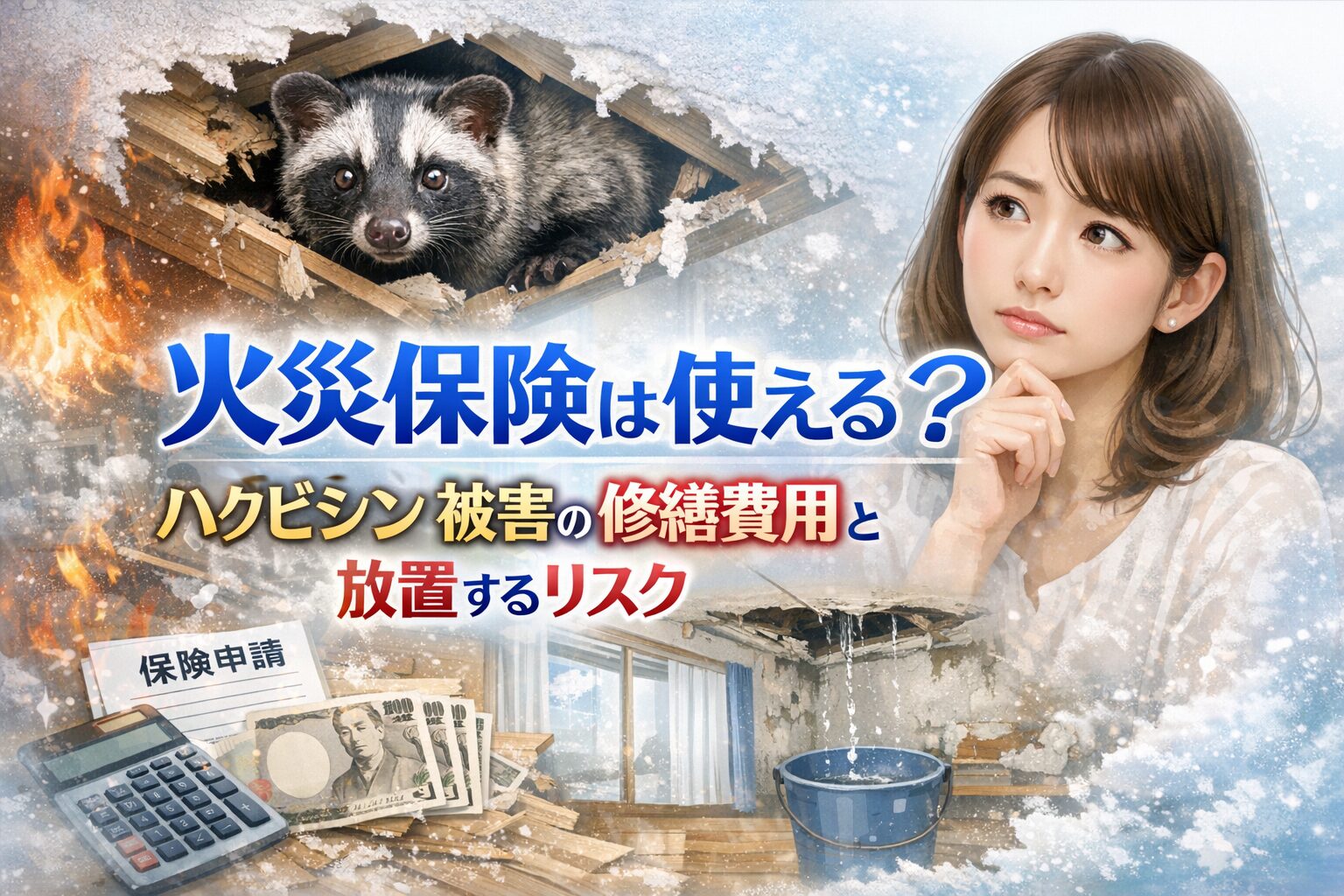 その正体がハクビシンだと知ったとき、多くの人が真っ先に考えるのが「火災保険で直せるかな?」ということでしょう。