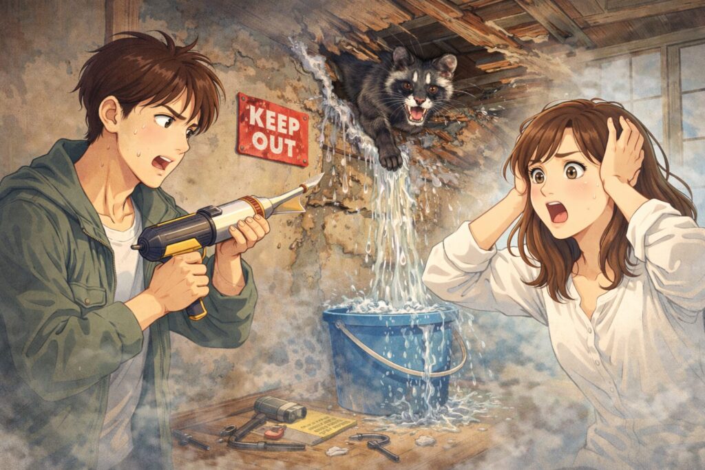 28年の経験上、素人のDIYでハクビシンを完全に追い出せたケースを、私は一度も見たことがありません。