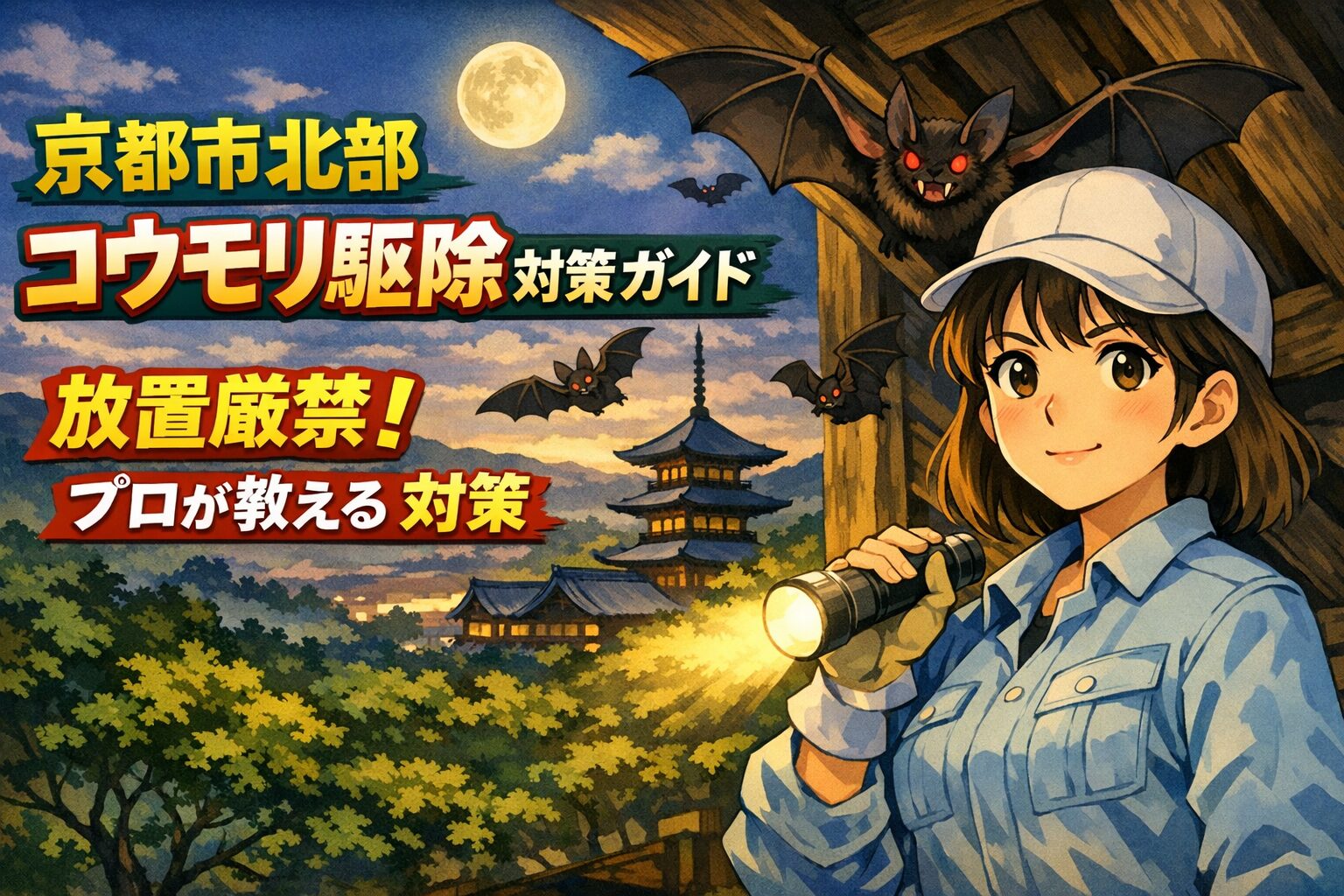 京都市北部でコウモリの気配を感じたら、今すぐ「害獣プロガード」に電話してください。