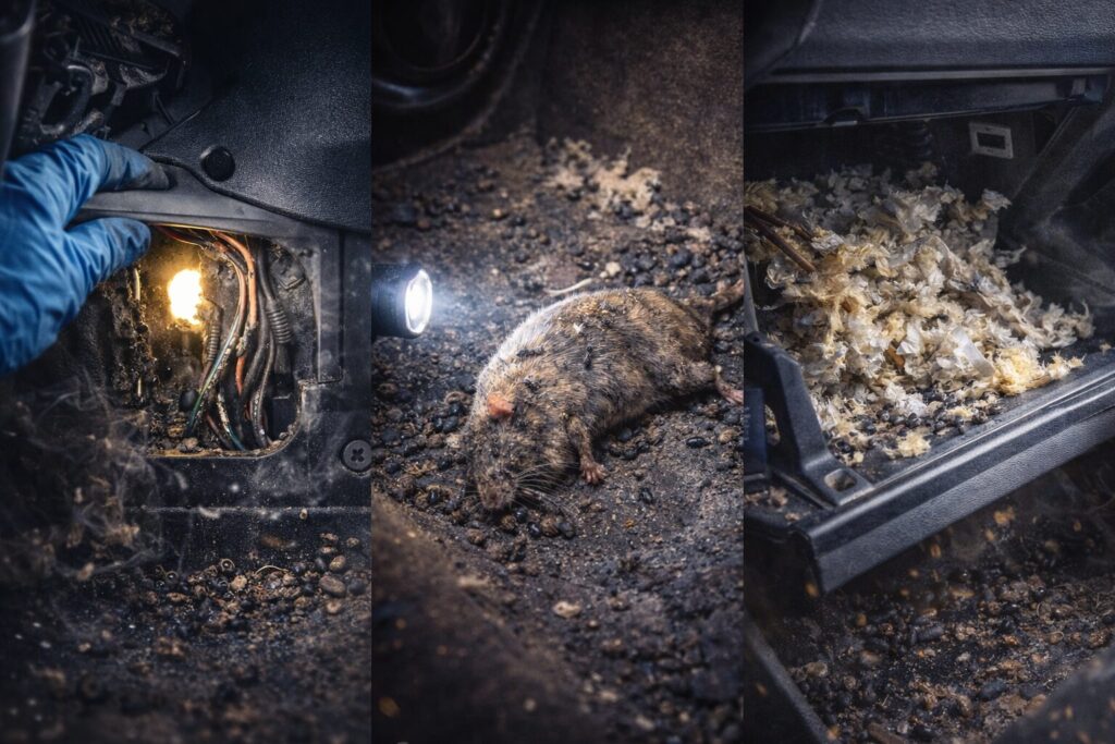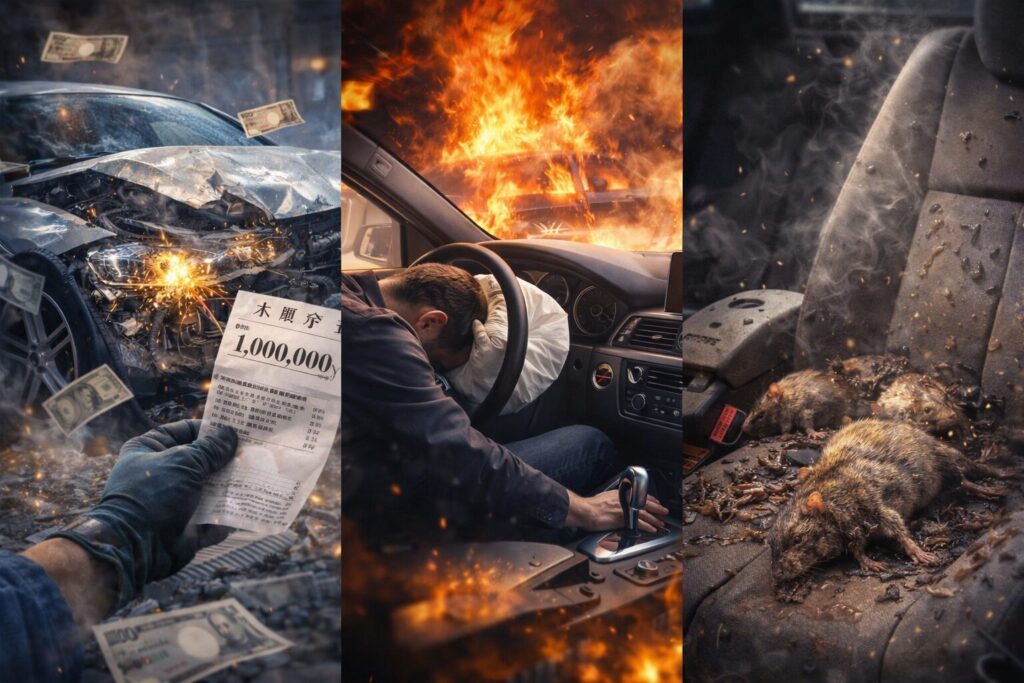 エンジンルームの奥深くでネズミが死んだ場合、その腐敗臭はエアコンダクトを通じて車内に充満します。どれだけクリーニングしても消えない死臭により、査定額は大幅に下落、あるいは買取拒否という悲惨な結果を招きます。