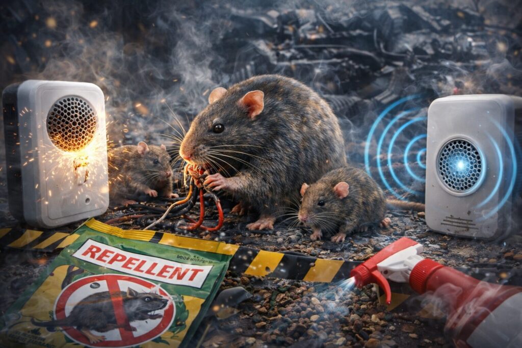 - 忌避スプレー: 効果は一時的。エンジン熱ですぐに成分が蒸発し、効果を失います。