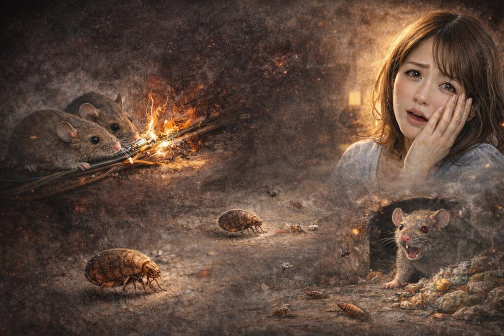 • 電気火災の恐怖: ネズミは一生伸び続ける前歯を削るため、家の配線をかじります。これが原因で漏電し、ある日突然、家が火に包まれるケースが後を絶ちません。