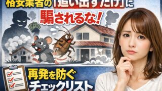 【被害再発率90%超?】格安の害獣駆除業者に頼んで後悔する人が急増中。「追い出すだけ」の工事がいかに危険か、業界の裏側を暴露します。二度とネズミやイタチを家に入れないための、プロ直伝「再発防止チェックリスト」を今すぐ確認!