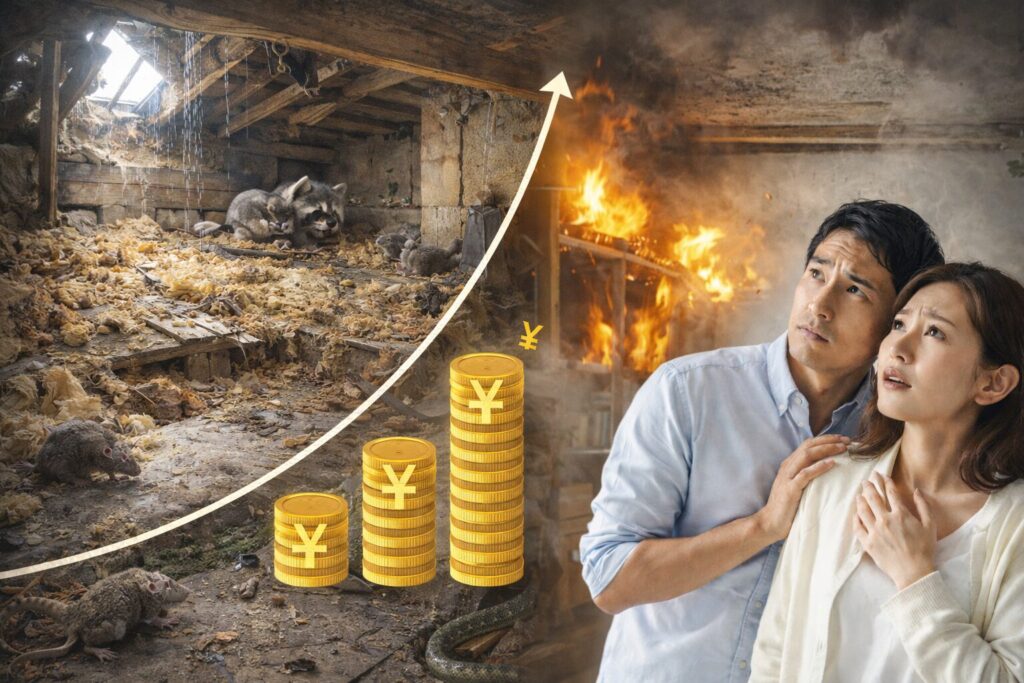 不動産売買の現場でも、屋根裏に害獣の形跡があるだけで、物件価値は数百万円単位で下落します。「後で」は、資産価値の自殺行為です。
