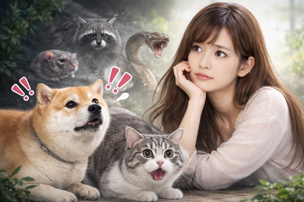犬や猫の鼻は、人間の数千倍から数万倍の感度を持っています。屋根裏に住み着いた害獣の排泄物臭や、獲物を仕留めた際の血生臭さをダイレクトに感じ取っています。彼らにとって、家の中に「天敵」がいる状態は、想像を絶するストレスなのです。