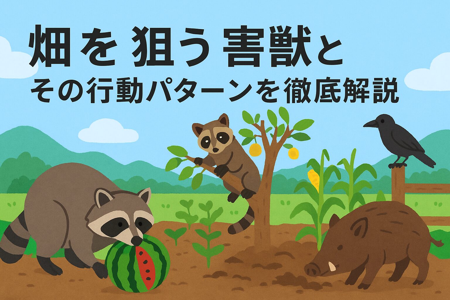 この記事では、畑を狙う代表的な害獣(アライグマ・ハクビシン・イノシシ・カラスなど)の