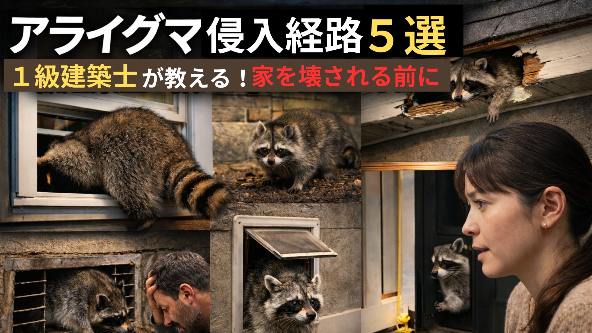 今回は、アライグマがどこから入り、どのようにあなたの家を壊すのか。