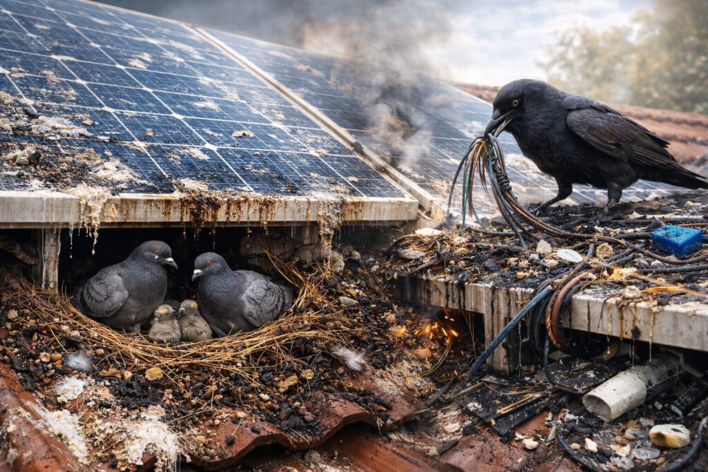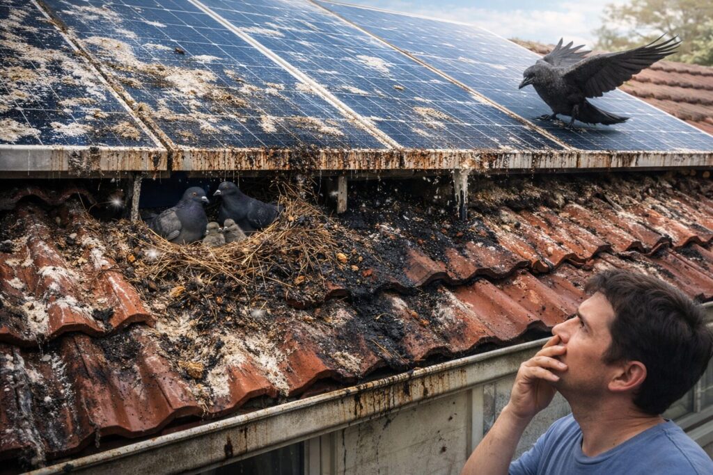 家を売却しようとした際、ソーラーパネルの下が糞まみれであれば、買い主は間違いなく修繕費用を差し引きます。あるいは、不衛生な印象から買い手がつきません。放置した結果、数百万円の資産価値をドブに捨てているのと同じなのです。
