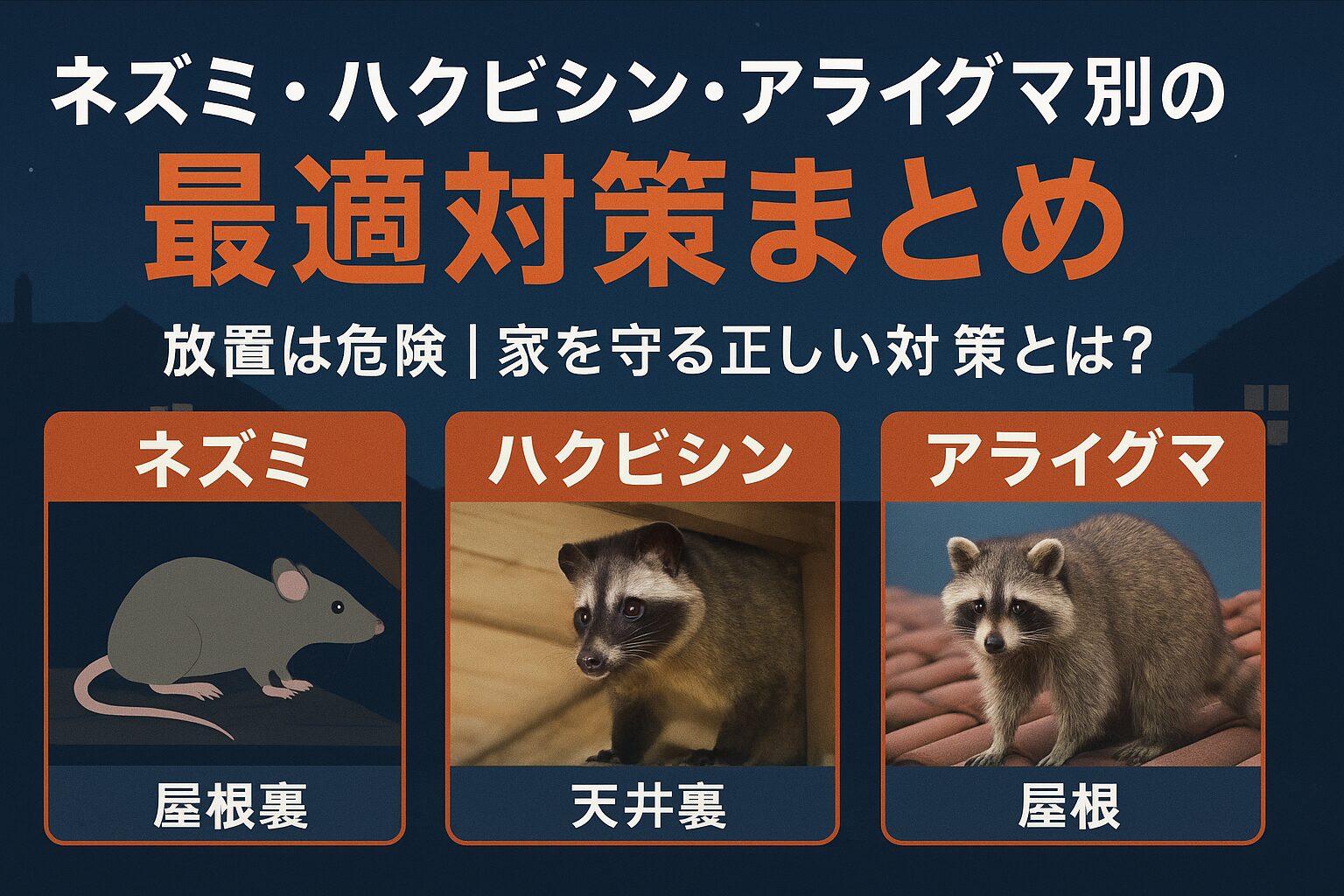 ネズミ・ハクビシン・アライグマ別の最適対策まとめ