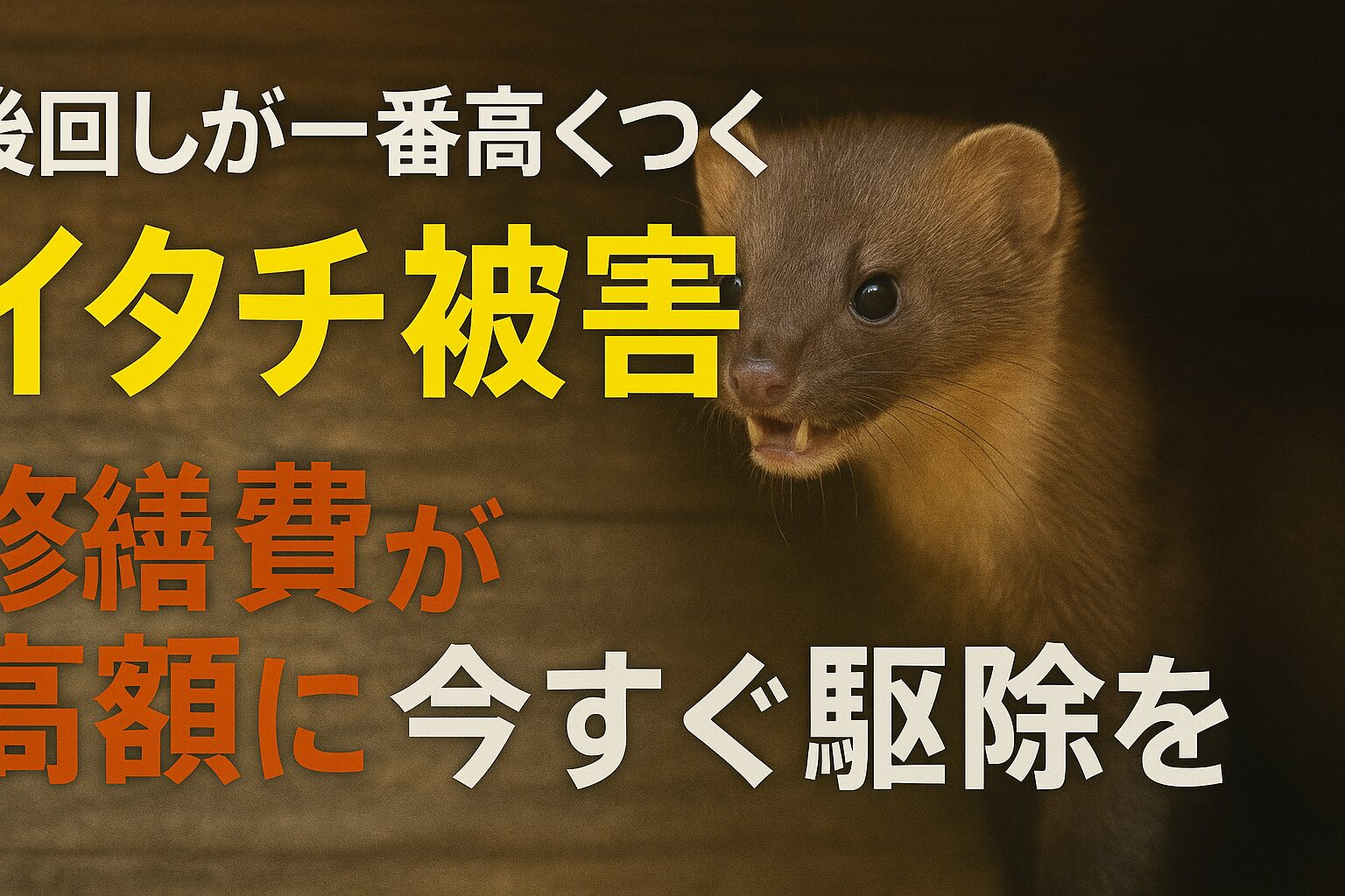 イタチ被害は、放置すればするほど被害が拡大し、最終的な出費が跳ね上がる害獣トラブルです。